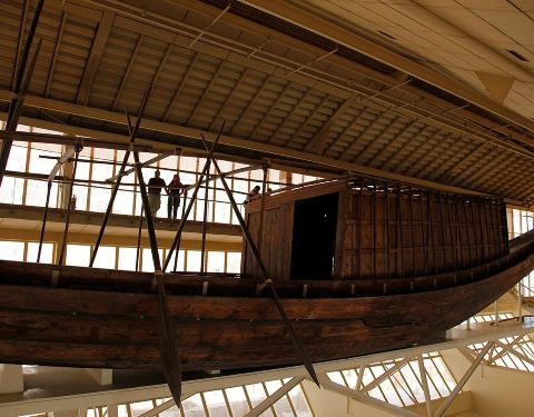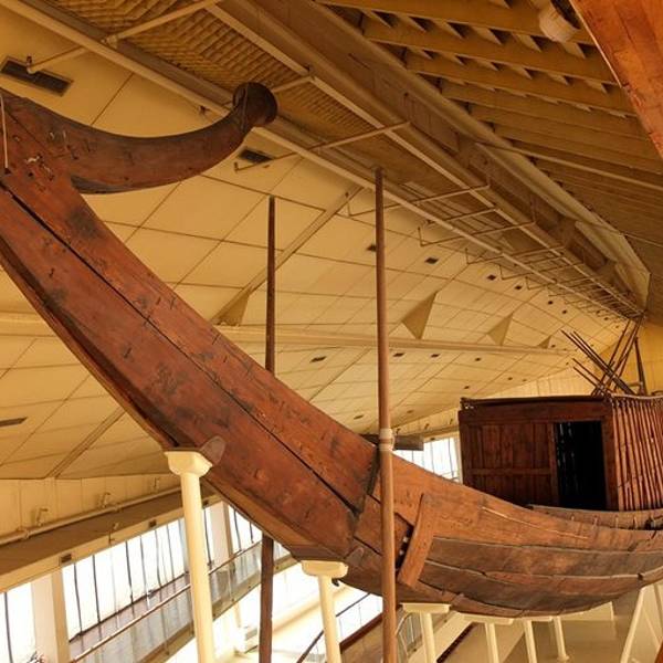 太阳船博物馆位于胡夫金字塔的南侧,里面展出一艘木制大船,供胡夫法老升天时追随太阳神飞越天空时乘坐,是迄今为止世界上发掘出的较为完整、较为壮观的古代船只。 目前馆内通过恒温系统和防腐技术对其进行保护。进入博物馆需要进行安检,安检后要再穿上麻布鞋套入内。在博物馆1楼可以看到一个太阳船的小模型,让游客对船的整体结构进行初步的了解。 令人惊叹的制造技术 巨大的太阳船长43.5米,船头高5米,船尾高7米。整艘船完全没有使用钉子,全靠木头和绳索将上千个零件组合而成,令人惊叹古埃及人的制造技术。 较佳拍摄点 在博物馆2楼的一个角落设有一处平台,是拍摄太阳船全景的较佳位置。