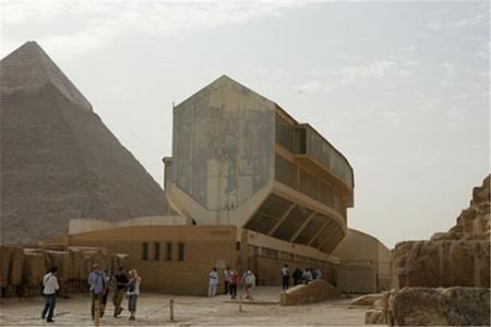 游览完金字塔,时间还有闲余,就到边上的太阳船博物馆参观游览完金字塔,时间还有闲余,就到边上的太阳船博物馆参观。太阳船与大金字塔是同一时代的产物,据考证是胡夫的殡葬船。它的神奇之处在于全船的木板全靠棕绳绑扎连接,依靠木头遇水膨胀,棕绳遇水收缩的原理堵塞...游览完金字塔,时间还有闲余,就到边上的太阳船博物馆参观。太阳船与大金字塔是同一时代的产物,据考证是胡夫的殡葬船。它的神奇之处在于全船的木板全靠棕绳绑扎连接,依靠木头遇水膨胀,棕绳遇水收缩的原理堵塞木板间的缝隙,使船体密封防水。博物馆外形就如同一艘船,馆内恒温控制,游客进入需要穿上特制的套鞋。馆分三层,底层是原始开挖坑,第二层陈列一些照片和碎片,第三层摆放的就是造型独特、体态优美的太阳船,虽然在地下埋葬了40几个世纪,但是整个船保存得非常好,木板没有一点腐朽的迹象。 展开