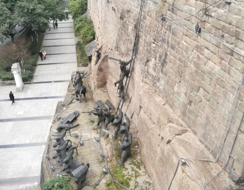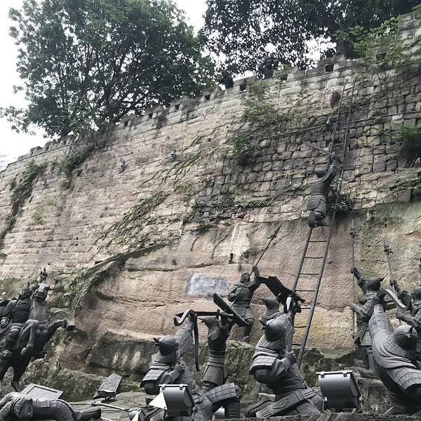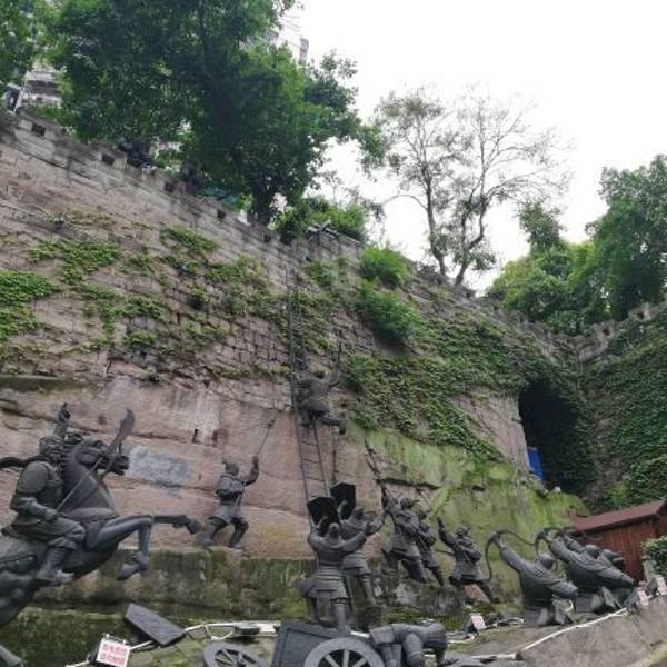 难得这么安静人少的景点。就像长沙的天心阁,通远门是重庆的城门,不可忘记的记忆难得这么安静人少的景点。就像长沙的天心阁,通远门是重庆的城门,不可忘记的记忆。 城墙上有守城、攻城群雕,看上去颇有古意。
