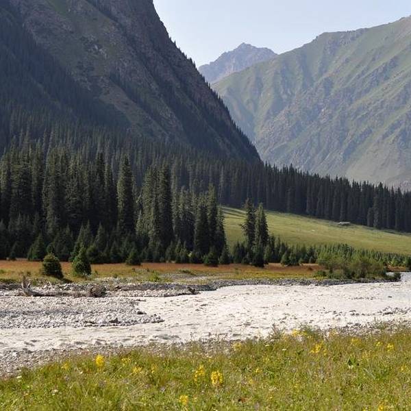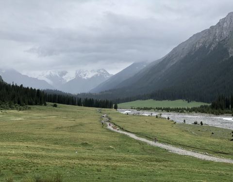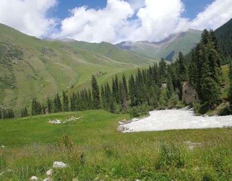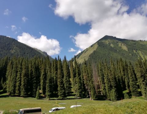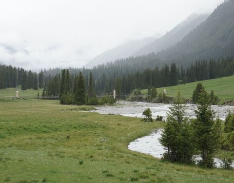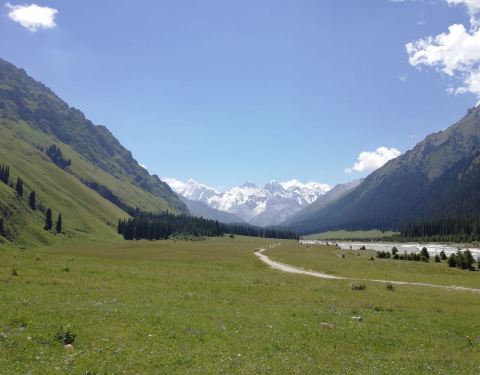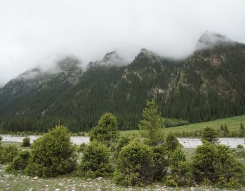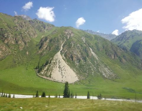 弯曲的山路两旁,是河流、森林,山间的景色越来越美。一路上车很少,路况也不错虫子喜欢:昭苏的夏特大峡谷