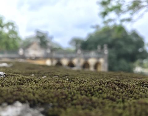 出门直走,, 往右,, 往 , 往左, 再往右..... 就是一直往西南方向走. 依次走过一条有货车驶过扬起灰尘的路 再经过一条林荫小路,还有溪水从底下流过 不远处就看到了一座带弯顶的西式门楼,隐藏于林木幽深之中...