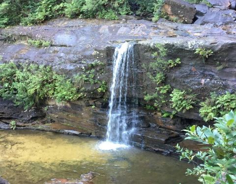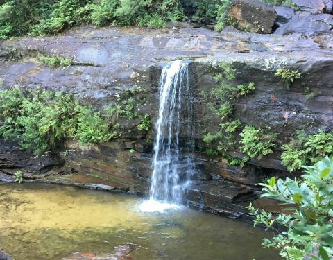 瀑布的水量不大,但上下山的路很是陡峭,算是体验山路徒步的乐趣吧参加了一个英文徒步旅行团,蓝山之旅的第一个项目,就是到瀑布区域徒步。瀑布的水量不大,但上下山的路很是陡峭,算是体验山路徒步的乐趣吧。