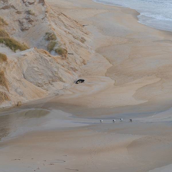 3、走到沙滩的另一头,有专设的观察小屋,可在里面静静等待企鹅的出现。黄眼企鹅,个体也很小,眼睛附近有道黄线,故名。