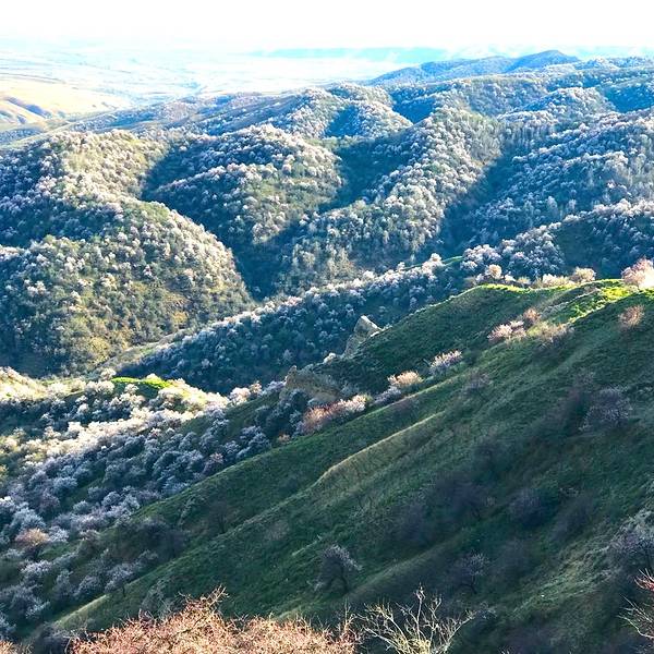 大西沟坐落在霍城县西北的大西沟乡境内,距县境50km。大西沟内有无数涓涓细流汇成大西沟河,河流蜿蜒曲折,夹岸重峦叠峰。碧野在著名的《天山景物记》中记叙这样的场景:“春天繁花开遍峡谷,秋天果实压满山腰,每当花红果熟,正是鸟雀百兽的乐园”。“有这么一条野果沟,沟里长满野苹果,连绵五百里,春天五百里的苹果花开无人知,秋天,成熟累累的苹果无人采,老苹果树凋枯了,更多的新苹果树茁长起来”说的正是大西沟。 有野生果树39.6万株,以野苹果、野酸梅、杏、山楂为多,而野酸梅林是亚洲独有的、唯一的分布在新疆霍城县大西沟境内逆温带山区的罕见物种,学名樱桃李,属乔木,果实呈圆球形、椭圆形,果实颜色分红、黑、紫、黄四种,鲜艳美观。味酸甜可食,制成的饮料、果酱具有降血脂、开胃等保健作用,产品供不应求,已濒临灭绝。境内的大西沟庙称福寿山庙,是清代新疆最大的道教活动场所,据原大西沟的道士周麟生讲,大西沟庙是清政府出钱,委派道士张半仙筹建的。