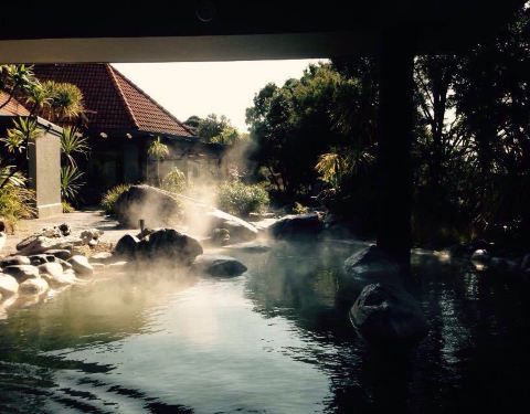 波利尼西亚温泉,景色不错波利尼西亚温泉,景色不错。 吃完饭再回旅馆拿换衣服再去泡温泉,路上闻到了阵阵浓烈的硫磺味儿,到了前台说只能泡20分钟了,急匆匆走进池子里,那一刻叫个舒坦 对面就是地热湖,“热的”直冒烟