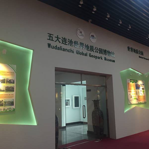 五大连池世界地质公园博物馆隶属于五大连池风景区党委宣传部,位于五大连池风景区石龙北路,始建于2003年,占地面积1.5万平方米,建筑面积800平方米。馆内设六个展厅,分别为综合厅、资料演播厅、岩石小课堂、矿泉水小课堂、火山小课堂和地方产品厅。综合展厅内设地学知识、世界火山、五大连池火山、熔岩集锦、火山堰塞湖、五大连池矿泉水、资源保护与开发等展板,全部设有规范化中、英文对照说明,实物标本百余件。火山小课堂内各类火山模型的展示,让参观者全面了解火山的内部结构,使知识的传达生动直观,为观众呈现一个绚丽多彩的科学世界;地方产品展厅集中了带有五大连池特色的旅游纪念品。