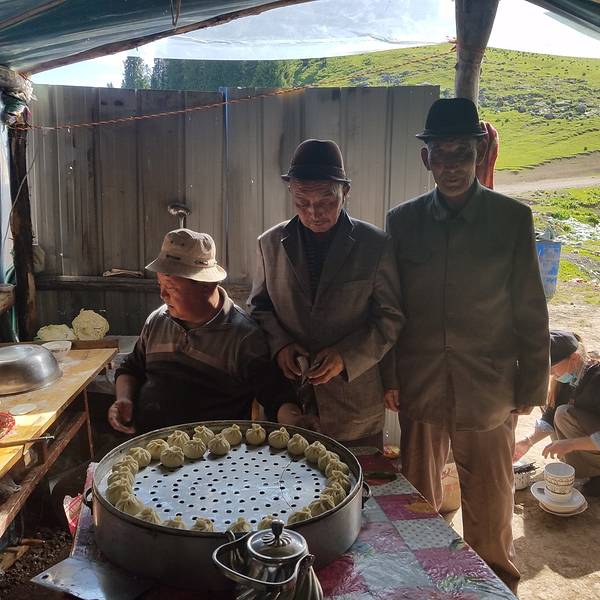 颠簸着上到垭口,这里果然有另一个世界。最让人感动的是牧民正在毡房里做羊肉包子,还有热奶茶。大叔和他的闺女非常热情,知道我们沒吃早餐,马上为我们现做一大笼蒸上。大家雀跃的一边到处拍照一边等吃。来时的路垭口风光郭师傅喊我们吃包子了
