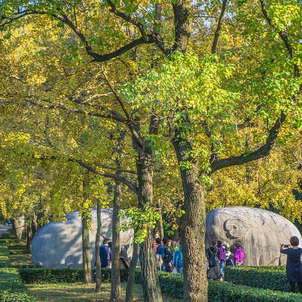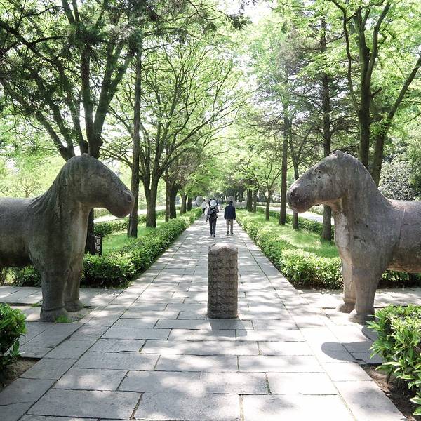 南京最美600米。石象路位于明孝陵景区内,是明孝陵神道的第一段,长615米,沿途依次排列六种石兽南京最美600米。