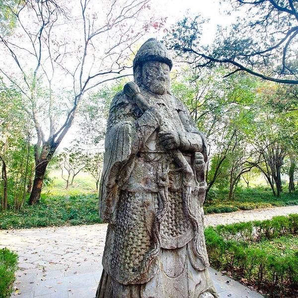 我是2018年5月19日周六下午去的,游人不是很多,从这个入口进去,先买票70元一张,进到陵园里后,第一个看到的就是神道的起点——望柱从这里开启神道漫游之旅。不过我很奇怪好多人说的什么石制骆驼、石制大象、狮子、獬豸、麒麟都没有看到,只有文武两对大臣的石像,感觉很奇怪啊,都弄到那里去了。这个是文臣雕塑很高大,超过2.5米了,身穿朝服,双手持象牙圭板,武将非常威武身披重铠,佩戴宝剑,双手持铜锤,守卫这神道,着对神像,被称为翁仲。神道长约600多米,两旁树木葱绿茂盛,神道的终点就是一个石桥,号称金水桥,就是90度拐角那里,立着明孝陵的石碑再往前走就是棂星门了,明孝陵的陵区进入的始点明孝陵的神道石像在全国也是“翘楚”,规模很难有帝王超越的,明孝陵神道的90度拐角,也显示朱元璋大帝的胸怀,和少有的包容性。 展开