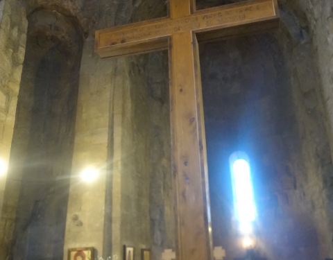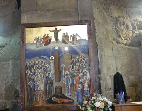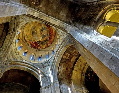 在格鲁吉亚而言真的可以用雄伟来形容了,在小小的姆茨赫塔,它所占的面积显得尤其大。内部的壁画也是很丰富,很美丽。 如果是上午来,估计很难拍到人少的照片了,很多旅行团都会在上午过来,而且很少有英语讲解,大多是俄语,所以想蹭听都有点困难。