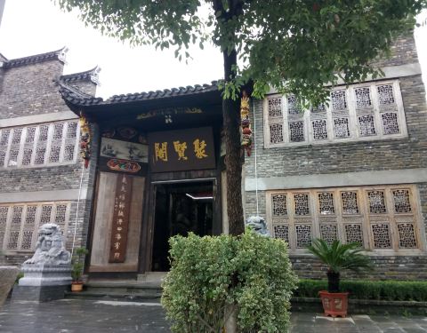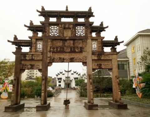 里面很大,有很多徽派建筑,还有私家博物馆,藏品很多,有木雕、石雕、瓷器、字画等,有果园、菜地、农家乐餐饮口味不错,好吃,还有会议室,KTV,温泉,客房,垂钓,吃完玩乐都有,适合家庭自驾游,公司开会。