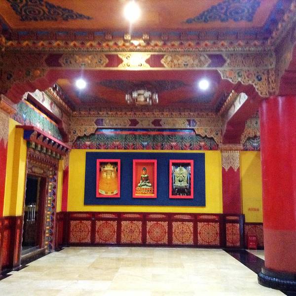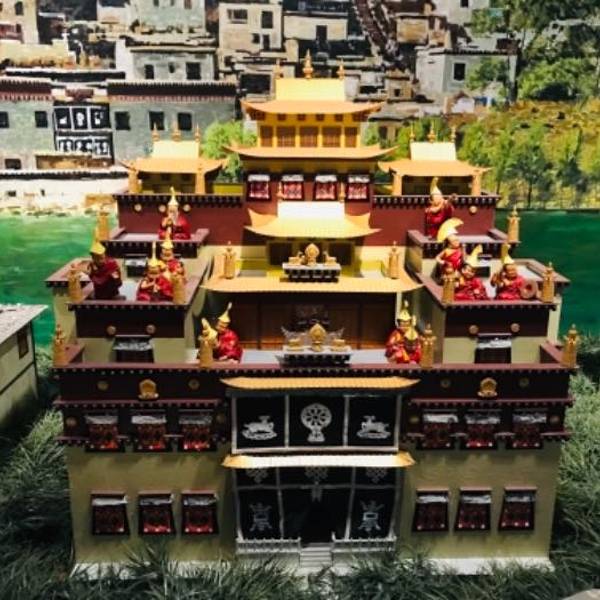 三、游览, 香巴拉藏文化博物馆馆内是不允许拍照的,这里有两个世界之最,载入吉尼斯世界记录,一是8层的时轮坛城,一是3-7层高达20.5米的时轮金刚大佛,馆内配有免费讲解,哪怕一个人也有专门的讲解服务, 届时讲解员会带领旅客从8楼开始游览,8层纯金打造的时轮坛城是世界上最大的纯金坛城,金光闪闪,非常震撼。之后走楼梯下到3楼,游览这里的时轮金刚大佛,这也是世界上最高的一座,最后是2楼的天珠、蜜蜡、绿松石参观区和购物区结束游览。四、住宿,距离香巴拉藏文化博物馆最近的高端酒店是恬居香格里拉酒店,国际品质,标准间800元起。也可以选择住在距离两公里的独克宗古城内,那里的客栈酒店选择更多。