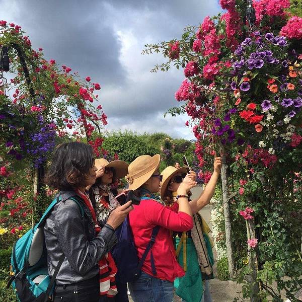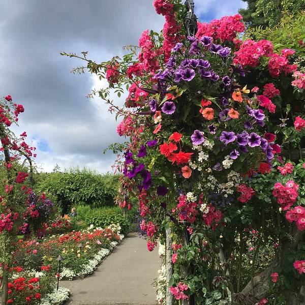 在加拿大的维多利亚市有一座远近闻名的花园,这就是布查德花园。布查德花园是一座家族花园,经过几代人的辛勤努力,已经成为了世界的第二大花园。布查德花园很大,分为综合服务区、下沉花园(SunkenGarden)、玫瑰园、日本花园、意大利花园和地中海园,修缮整齐的草坪和小径连接着这五大花园。购票时会附送一页游客指南,为了避免重复行走,可以在参观前先研究一下游客指南。综合服务区是游览花园的起点,在一个称为水轮广场(WaterwheelSquare)的周围就是游客服务中心,这里还有种子和礼品店,以及咖啡馆和餐厅。从这里开始向北经过蜗牛池便是布查特先生建造的温室花房(ShowGreenhouse),冬季的时候花房内向游客展示他们培植的鲜花和精湛的园艺。花房右侧是布查特家族旧居外铺的小广场,这里有一些铜质的小动物雕像,有小马、小羊,还有趴在荷叶上的青蛙。另外还有一头稍大的名为塔卡野的猪雕像,它的鼻子被成千上万的游客摸的非常光亮,他们认为抚摸塔卡的鼻子会带来好运。广场周边斜坡的立柱上,夏季可见玫瑰蔓延绽放,枝蔓吊垂。再往前走一点,就是吊满花篮的棚架,布查特先生在这里为他所搜集的珍奇异鸟设置了华丽的鸟房。看过广场上的小动物们来到布查特家族的旧居。这是两幢连在一起的房子,绿色的屋顶和白色格窗,给人一种温馨和亲切的感觉。屋内按布查特夫妇居住时的情景布置,在客厅和面朝意大利花园的走廊上可以看到很多中国元素。雕花红木家具、高颈青花瓷瓶,以及走廊上挂着的中国灯笼。旧居四面用白色格子栅栏围起来的是布查特夫人的私人花园,这座花园至今保持着她在世时的样子,是花园中从未对外开放的地方。沿着一条蜿蜒的小路向南步行,走几十级石梯下坡就到了下沉花园,这里请留意欣赏仿橡木的水泥扶手。下沉花园现在已经完全看不出它原先是一个矿坑,到更像是进入了一个幽深的峡谷。走在用岩石铺设的小径上,可以看到两旁有一对精心修葺的侧柏,这是一百多年前由布查特夫人亲手栽种的。峡谷的底部布满了各种几何形的花坛,中间用岩石垒砌的观景台与四周的悬崖一样高,登上观景台可以一览花园的全景。花园内有几个大小不等的湖泊,由一条蜿蜒的溪流将它们贯通起来,继续沿着湖左边的小路来到罗斯喷泉(RossFountain)。这是1964年,布查特夫妇的孙子伊恩·罗斯在花园60周年纪念时建造的。喷泉的水柱高达21米,昼夜喷涌,展现绚丽的姿彩。从这里,一条水泥坡路向上延伸,顶坡是一片广阔的草坪,这片草坪是夏季焰火表演的观赏区。左侧是青铜马“安娜贝勒”,这是园内的收藏品之一,在的后面便是儿童游乐厅和玫瑰旋转木马,可以看到旋转木马上有30个手工雕刻的木制动物和两部战车。在草坪的更远处有两根高耸的纪念性图腾柱(TotemPoles),这是两位来自当地的杰出原住民艺术家在布查特家族100周年时用了整整一个夏天的时间创作的。图腾柱的下方便是烟花欣赏区(FireworksViewingArea),每年7、8月周六的晚上,都会有数千游客来此欣赏壮观绚丽的烟花表演。继续向前,路过风琴亭,沿着音乐会草坪(ConcertLawn)左边花棚架下的花径,就来到了玫瑰花园。这里的花坛规则对称,共有6600棵修剪过的玫瑰整齐的排列在花坛里,每一棵都标明了品名、原产国以及在美国协会注册的年份。每年的七月和八月是玫瑰花园美丽的时节。之后会经过鲤鱼喷泉,继续向前走,穿过一个红色的日式牌坊大门,走下台阶便进入了日本花园。日本花园内有一些日式竹亭、石雕灯座,以及石头经幢,小溪上架着日本特色的红色木格栅栏小桥。这里的植物按照日本园艺的风格修剪,或圆或方或圆柱形。松树和柏树修剪成层云状,犹如大型盆景。园内的风格清纯自然,富有佛禅意味。晚春时节,这里到处都开着喜玛拉雅特色花,已成为日本花园的特色花卉。从竹子拱门下的小路可以到达托德湾边的小码头,游客可以在这里乘坐电动船游览托德湾。海湾码头季节性开放,夏天这里还有一些水上娱乐项目。码头相关信息可见官网。从日本花园出来后,沿着石砌的阶梯登上一个小坡,就来到了星池(StarPond)。这里初是为布查特先生饲养的观赏鸭而设计的。星角之间花坛里种植着色彩缤纷的一年生花卉,在星池中央的圆台上蹲着六只青铜青蛙,水柱从青蛙口中喷向不同的方向,因此星池也称作青蛙喷泉。从星池向南穿过植物墙下的圆拱门来到意大利花园,这里原先是一个网球场。在拱门入口中间有一个青铜的墨丘利神雕像,园内有一个十字形的水池,两侧是对称的花坛。每年布查德花园都会从荷兰进口郁金香球茎,春天的时候就在此种植,白色或紫色的迷迭香衬托着亭亭玉立的郁金香花,非常迷人。花园左边的狭长建筑曾是保龄球场,现在是季节性营业的冰淇淋店,为游客遮阴纳凉。从保龄球场下面的通道出来,就回到了水轮广场。走出水轮广场,穿行在美丽的金链花拱棚下,悬垂的金黄色花朵在晚春时节缤纷绽放,之后便来到了后一个花园——地中海花园。这个花园是这个地区温和气候的佳体现,花园内汇集了很多来自世界各地、生长环境与本地相似的耐旱花。参观完便可回到停车场。