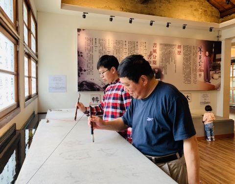 楼上有很多台南小朋友的书法作品,四年级小朋友写的书法超级棒,比我写的好太多与安平树屋在一起,进去了才知道是朱玖莹故居。整幢楼房2层楼结构,楼下左边是介绍朱先生的生平,右边是体验式水写桌。 这点做的比大陆要好一些,体验式的书写✍️可以看着朱先生写的文字进行临摹书写,女儿和爷...与安平树屋在一起,进去了才知道是朱玖莹故居。整幢楼房2层楼结构,楼下左边是介绍朱先生的生平,右边是体验式水写桌。 这点做的比大陆要好一些,体验式的书写✍️可以看着朱先生写的文字进行临摹书写,女儿和爷爷也是2个人开心的不得了。 楼上有很多台南小朋友的书法作品,四年级小朋友写的书法超级棒,比我写的好太多。 展开