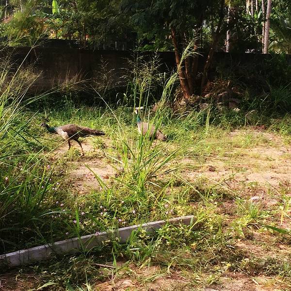 猜我在院子外边看到什么?两只大孔雀!我是第一次在动物园外面看到孔雀啊,好开心,就一直跟着它俩。后来大概被我跟烦了,人家拍拍翅膀飞了。厉害了,我的哥!原来孔雀是可以飞的,还能飞那么高,涨知识了!