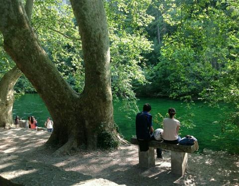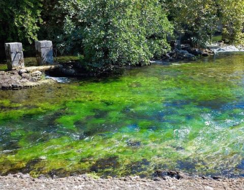 枫丹泉水镇的沃克吕斯泉是法国最大的自然山泉之一,也是世界第五大涌泉,清澈的泉水缓缓的从山间流下,形成一条碧绿见底的小河。