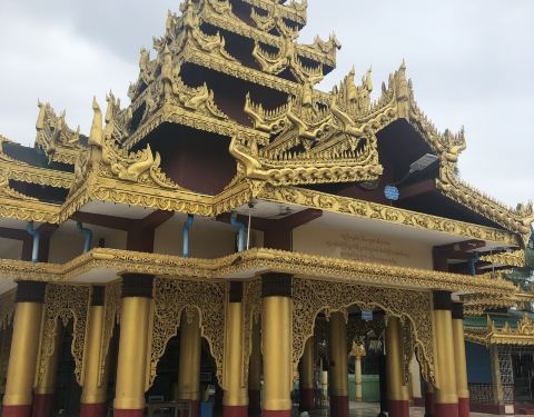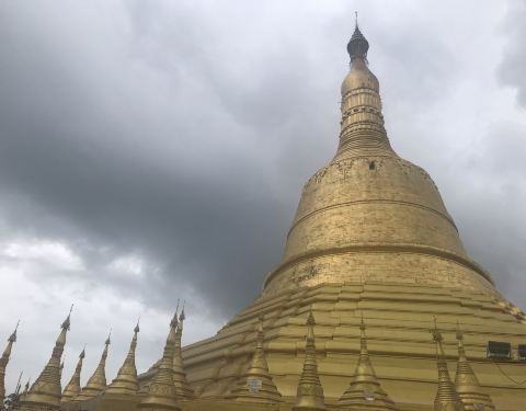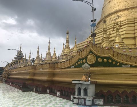 佛塔建筑于1000多年前,塔面整体镀金,景面壮观,气势华丽,是缅甸历史著名四大佛寺之一 2016-06-12 20:46