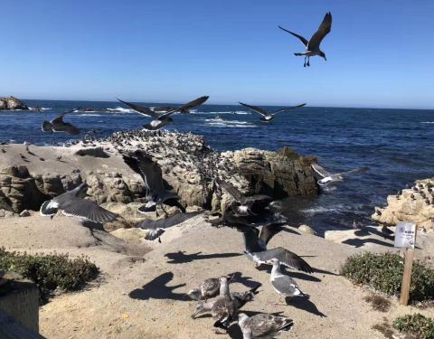 j加州遍地都是阳光啊。 在这样美好的天气,游览17里湾风景线,真的是绝美的享受。 吹吹海风,看看海鸥,真的是令人可以完全放松身心,感受大自然的恩赐。