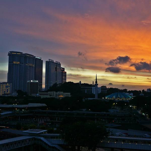 完了他两说今天好累不想出去,来这么久都没有近距离接触KL Tower,我打算自己去看看。想着还有时间就在酒店附近兜兜转转,日落时的天空很美,我忍不住拍了好多张。