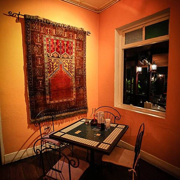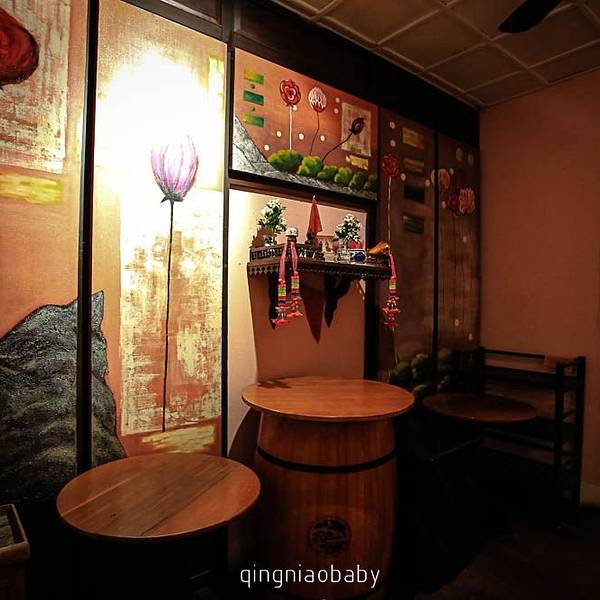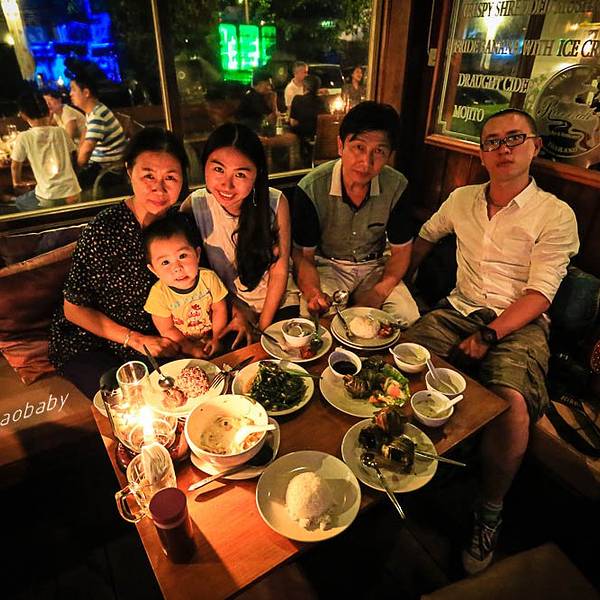 瀑布餐厅的瀑布就是人工瀑布小景啦,不介意真景假景的可以选择这里,香草鸡块味道非常好,不要点绿色咖喱(太辛辣),鱼还好,水是另外收费的。原先我以为是像国内一样的倒一口杯的那种,结果服务员妹妹拿了三瓶大玻璃瓶装的矿泉水,直接就把瓶盖打开了。三瓶/70株。加上饭菜最后结账的时候用微信刷账单支付可以打八折,总共122元人民币/三人(我们木有开通国际漫游,不过餐厅有wifi的,可以蹭)餐厅坏境氛围也做的很好,趁着找洗手间的功夫我就楼上楼下溜达了一圈(男厕在一楼,女厕在二楼)餐厅里也有供奉的地方,类似于国内的供奉财神一样的。难得有合影,其实餐厅里的光线非常非常非常昏暗,木有办法只能用我的老办法,手机打灯\(^o^)/~乐队表演很赞,中间那个黑色T恤的姑娘,真是小小个子爆发力惊人,嗓音浑厚,唱黑人音乐超赞~\(≧▽≦)/~饭后小伙伴们骑小绵羊回酒店,我和斌姐姐阿娇三人打突突车回酒店,三个人一辆车共150株。