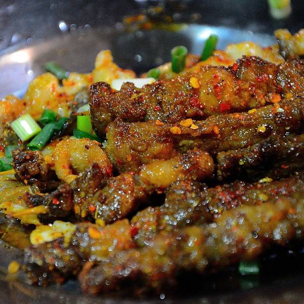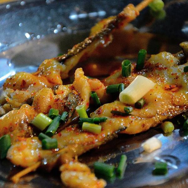 到了西昌不得不尝的就是这一道醉虾了,有人说江浙的醉虾才是最正宗的,西昌的醉虾不是醉死的是辣死的。。。我想说,西昌的醉虾才是最适合川人口味的。 关于西昌醉虾的做法特意请教了一下老贵:选用邛海的小虾(这个其实就不用介绍了),用啤酒微醉一下,西昌香醋,糖,姜,香菜,小葱(这个葱可能也是本地的,跟我们平常的小葱还是有区别)小米椒,海椒面(注意了:这个海椒面没有经过kang的)用冰水调成汁,最后放入小虾90秒就可以食用了。 最享受的是小虾放在嘴里还在跳动的感觉,酸得正,辣的爽烤鱼片,鱼肉嫩而爽口每一根烤牛筋里面都有一小块肥嫩的部位,真是好吃到想爆粗口。烤五花肉也是一绝第一次吃这种烤小白瓜,感觉很清香。爆浆豆腐,一口咬下去真的会爆浆耶,太美味了烤大贝壳,选用产自邛海的贝壳,取其肉洗净,切成块状,加入小米椒,本地特产的酸菜等调料,将贝壳置于火上,倒入清油加上食材,慢慢烹饪。N多分钟后,烤大贝上桌了,是不是很有食欲?这个烤小白鱼是我的最爱,直到吃到最后老板给我烤了三条,我一下就吃出不是他家烤的,老板很不好意思的说他家的卖完了,还是老贵家的烧烤味道正宗啊有机会去西昌玩的话,一定要计划去一次邛海湿地,在老海亭住宿一夜,因为老海亭的对面就是邛海湿地,因为老海亭有家烧烤叫老贵烧烤。。。。。。 不是打广告哈,呵呵!老板的女儿说了,凭此照片可以享受9折优惠晚安,月城!期待明天的美景,美食