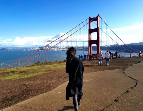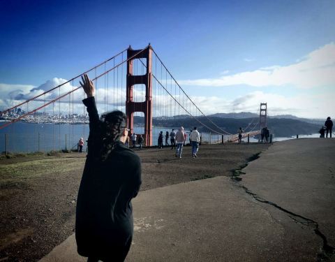 从这里看大桥 美不胜收 我去的时候正好晚上 可以拍摄到极美的画面 能看出来桥的全景 不过去这里要开车就是金门大桥的观看点 从这里看大桥 美不胜收 我去的时候正好晚上 可以拍摄到极美的画面 能看出来桥的全景 不过去这里要开车