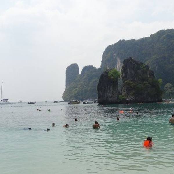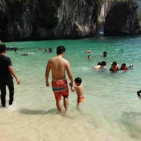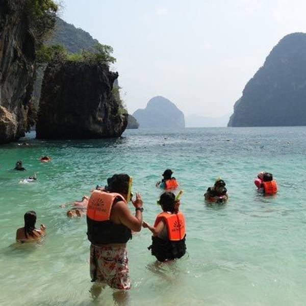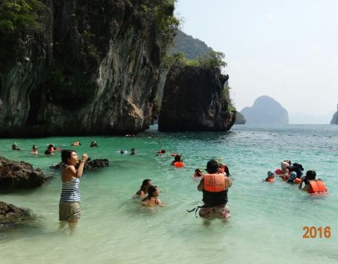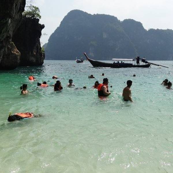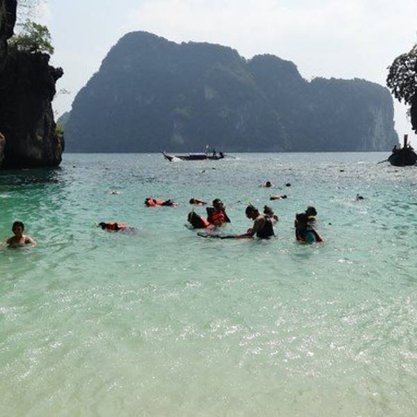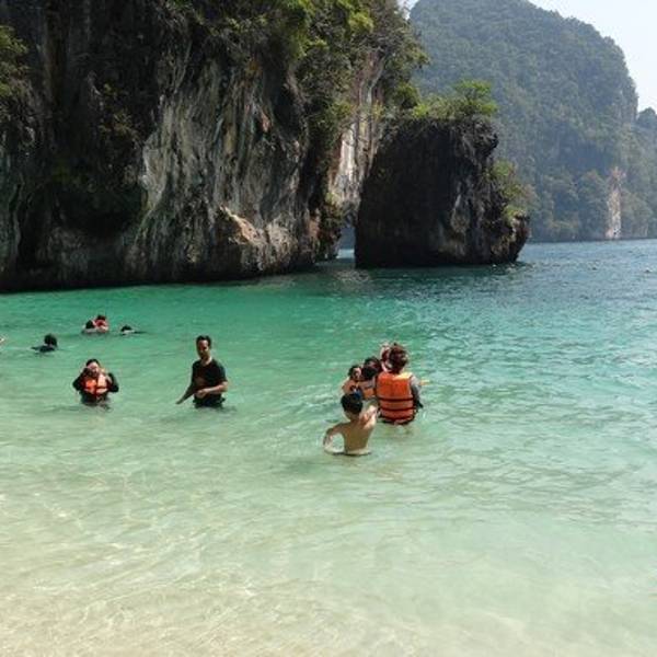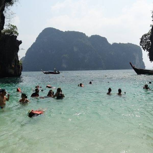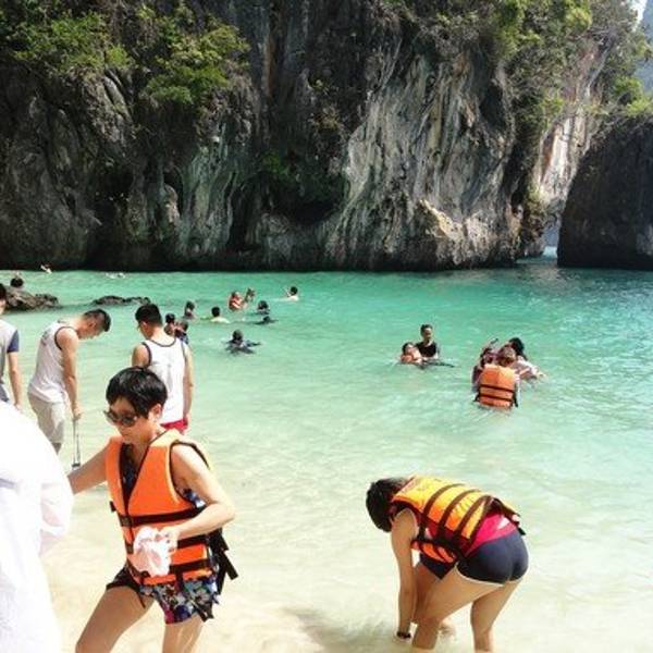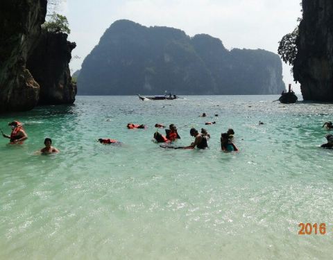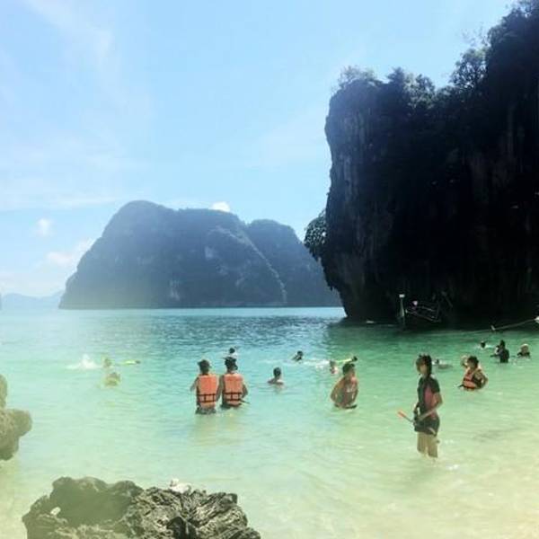 和HONG岛一起游的,景色不错,尤其看着长尾船穿过水面感觉特别棒和HONG岛一起游的,景色不错,尤其看着长尾船穿过水面感觉特别棒。这里比较适合游泳,另外岛上有而且不惧怕人,很有意思