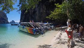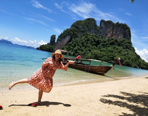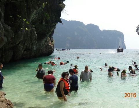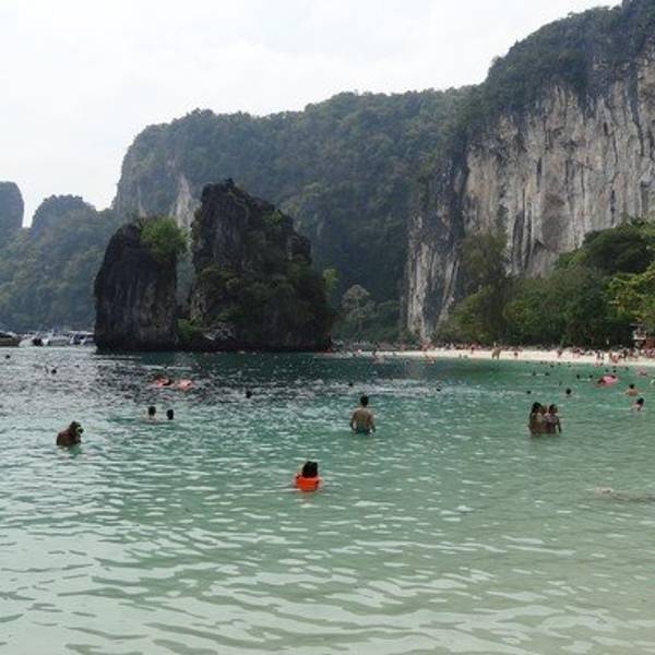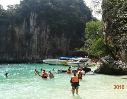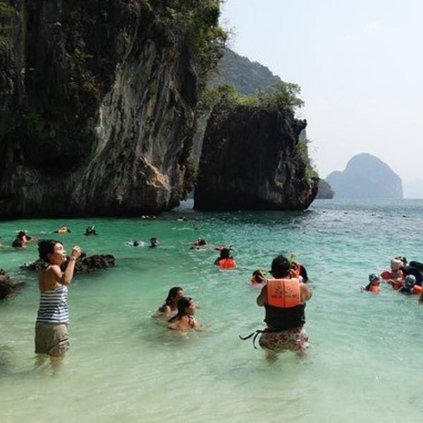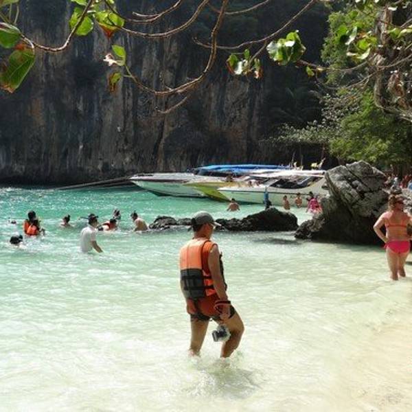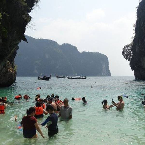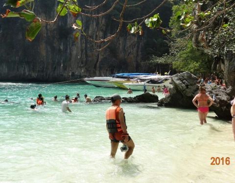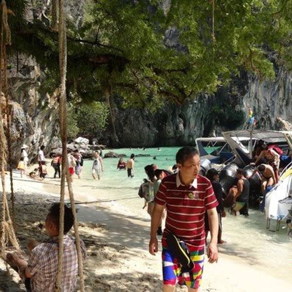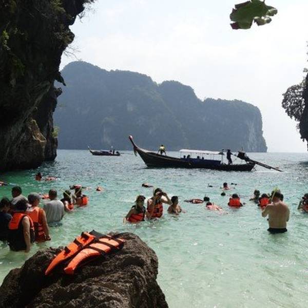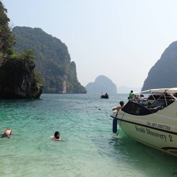 和HONG岛一起游的,景色不错,尤其看着长尾船穿过水面感觉特别棒和HONG岛一起游的,景色不错,尤其看着长尾船穿过水面感觉特别棒。这里比较适合游泳,另外岛上有而且不惧怕人,很有意思