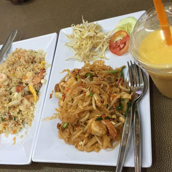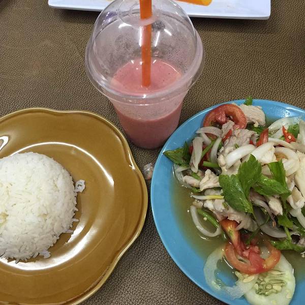看不懂泰文的菜单,点的菜都是特别的辣。选择的酒店,出门就是步行街