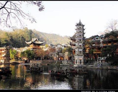 遐昌阁位于凤凰古镇的虹桥附近 很多人会在这里拍对面的回龙阁吊脚楼 这里自然也成了很多拍照收费人...