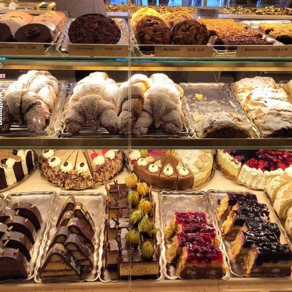 走过转盘,穿过一片集市,径直对着的这条小街,就是要找的皇家甜品店K&KKonditorei Zauner所在地,真是一气呵成,有种绝处逢生的赶脚。(做个吃货,也是蛮拼的)漂亮的当地传统服饰,有很多当地的年轻人都爱穿这个。不愧是皇家,奢华的门面一眼就被认出来,推开门,琳琅满目的蛋糕让人挑的眼花缭乱。