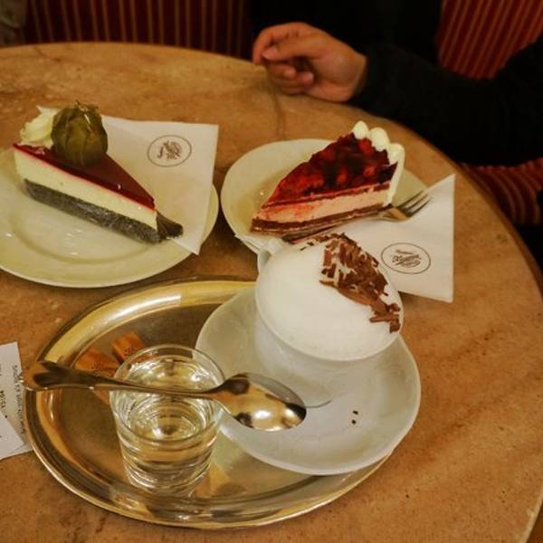 两件蛋糕加起来是7欧,一杯cappuccino是3.2欧)价格不算贵,味道确实比一般的小店美味
