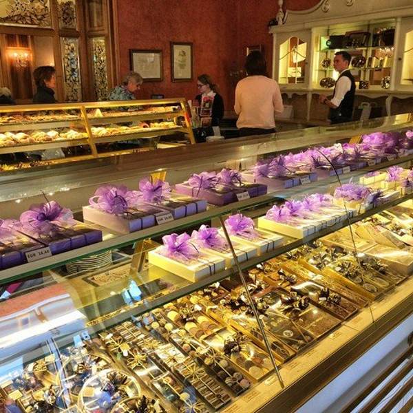 镇上著名的皇家御用甜品店Zauner,这座开业于1832年的咖啡厅负责提供弗兰茨在巴德伊舍停留期间的茶点,因此而名声大噪。它以糕点闻名,所以其糕点的种类与式样比旅途上的很多咖啡馆、茶点屋都多。甜品店大厅四周都是玻璃橱柜,各种式样的糕点和巧克力绝对会让你挑花眼