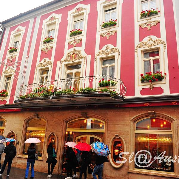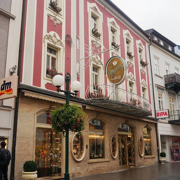 巴德伊舍进城的地方有个很大的地下停车场,我们把车停在这里,然后步行去著名的皇家甜品店泽纳。泽纳是弗朗茨·约瑟夫最喜欢的甜品店。巴德伊舍有两家泽纳,相距不远。一家在城里的Pfarrgasse路,叫泽纳甜品店Kon...