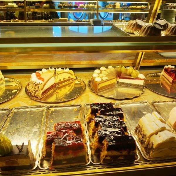 不愧是皇家,奢华的门面一眼就被认出来,推开门,琳琅满目的蛋糕让人挑的眼花缭乱
