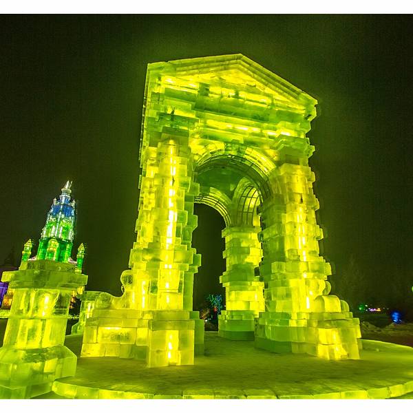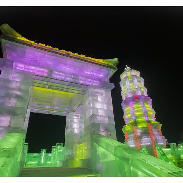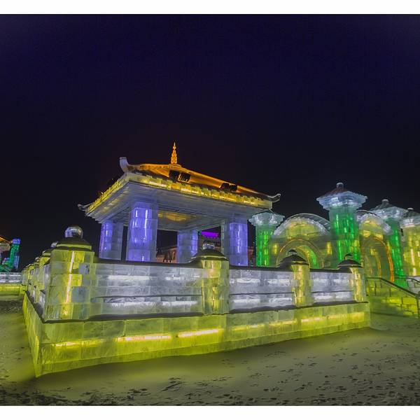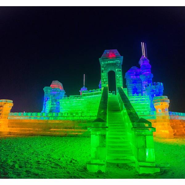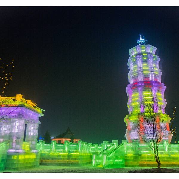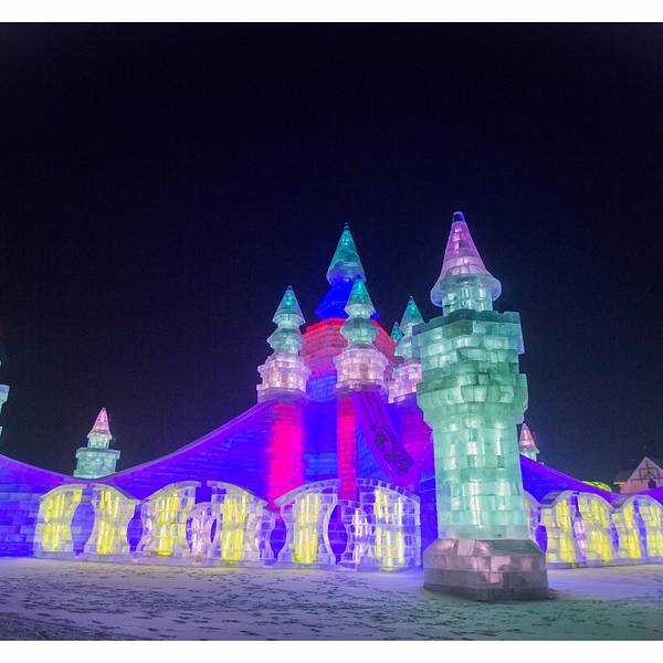 欢乐冰雪世界一到了晚上,才真正的散发出她独特的魅力,这个与白天截然不同的视觉盛宴会让你感觉仿佛来到了另一个异世界,长廊的柱子是用冰砖砌成的,冰柱里面是空心的,装有彩灯,发出五颜六色,这组成了美丽的冰灯,各式各样的冰灯遥相呼应,构成了一个热闹非凡的圣诞party。零下30度的哈尔滨,泼水成冰。夜幕刚落,再访景区,雪雕旁的镭射灯,冰雕内的彩灯,灯灯相映成辉,座座光彩照人。光影交织,奇幻至斯的古城场景,再现了西安的大雁塔的壮观景象,置身其中,只觉时光都被艺术的停滞了下来,仿佛魂归唐朝。在这里,仿佛忘却了彻骨的奇寒,忘却了流逝的时间,忘却了世俗的闷烦。踏上冰梯走进迷宫世界,天空中的反射的光线和地面上的灯光交相呼应,如梦似幻。经过一个光影闪烁的异世界,好像自己也被带进了另一个未知世界,此刻的我们只知道,所在的仿佛并非人间。虽然温度已经达到了零下二十度,冰雕前依然有神态悠闲的人群流连欣赏,举起相机记录下这些艺术品的倩影。虽然手已经冰凉刺骨,但看到如此优美的夜景,忍不住心中的热情,继续前行,小风车惟妙惟肖,光彩溢人。每个人都有自己喜欢的艺术品,有五花八门碉楼,五颜六色的城堡,穿越期间,每一处风景都在编织着一个个雪国故事。这里的冰雕艺术,巧夺天工。紫色的城堡中总是蕴藏着一个美妙的童话梦。不同的冰雕创意新颖,气势恢弘,或高大雄伟,或娇小玲珑。你一定想不到这座五颜六色的城堡同时也是一个滑梯,这里不仅仅是孩子们的天下,更是成年人的童话世界这里仿佛人间天宫,每一处冰雕都璀璨辉煌,剔透玲珑,娇如皓月,美似繁星。长达八百米的超级滑梯一定要试一试,从景区的制高点一划而下,妙不可言的体感,体验着哈尔滨零下三十度的非凡感觉。这座滑梯同时也在申请世界吉尼斯纪录,身处梦幻又美丽的冰雕之间,让你全身的汗毛都竖起来。夜里的冰雕和白天皆然两种感觉,每一处都散发着浓浓的欢乐的气息,如果说白天的冰雕是一个优雅知性的美人,那么夜晚她就会幻化成调皮可爱的孩子。造雪机不停的在空中飘雪,烟雾一样的雪花洒在层层的人造雪上,踩上去咯吱咯吱作响。最让小朋友喜欢的是一个个形色各异的卡通人物,让人好像来到童话世界,在这里,我也变成了一个孩子。园区的工作人员告诉我,他们把一大块雪抑或一大块冰,堆砌成方形,然后以挫刀雕琢,钩钩砍砍,大概十几天多则月余的时间,就变成了粉雕玉器般的灵气物件。我们在感叹这些艺术品的同时,也惊叹能工巧匠的手艺,有了他们,才有了这些绚丽,纯净和神奇。城堡上的雪雕旁灯光闪烁,冰雕内的彩灯,灯灯相映成辉,座座光彩照人。俯瞰整个园区,星光点点的让人感觉那么的不真实,有人说童话是孩子们的乐园,但我觉得只不过有些大人不愿意承认自己还有个孩童般的心罢了。园区内处处是琼楼玉宇,晶莹瑰丽,玉树琼枝,千奇百怪,让人百看不厌。整个公园沉浸在冰雕内粉蓝黄的氖灯光里,星星点点的灯光组成了优美的点线面。虽有千里冰封,万里雪飘的气魄,但所有树木都是玉树琼枝,好似在开一个盛大的聚会。冰山城堡撒发着迷人的魅力,今夜所有的美好和欢乐都融化在这片晶莹剔透的冰雕中。转身再看是呼兰河口世纪钟,壮观的场景比大本钟更为绚丽多彩。处处是自然的壮观冰景,人造冰宫的世界使人耳目一新,现代科学的融入更显科幻迷离。伴着绚烂多彩的灯光闪烁,一棵棵光树银花绽开,就在今夜做着一个童话的美梦,让一切的美好都揉进梦乡。期待了很久的雪,别忘了来一次个人写真,让此刻的雪花记住你最美的容颜。呼兰河口湿地公园 展开