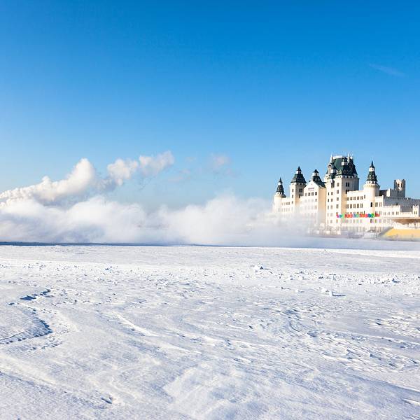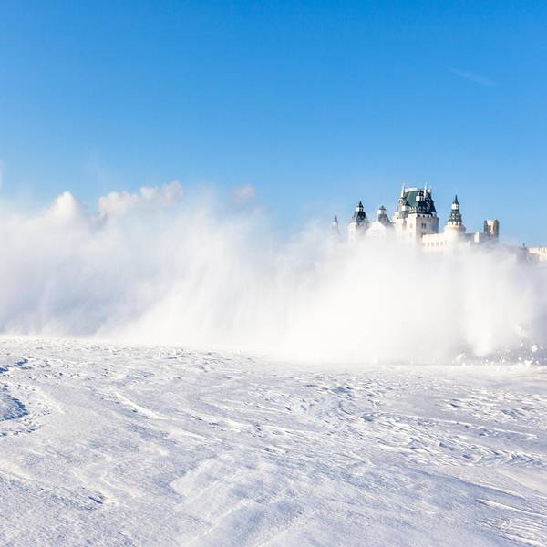 我们上车体验时,其实也并没有山地车那样上下颠簸,只是左右的因为惯性失衡,和车窗外不时溅起的巨大雪浪,当然,我们会时不时的配合的喊叫两声,很礼貌地给赛车手成就感。冰雪漂移,在零下30度的冰上溅起巨大浪花眼前是不知冰冻几尺的冰面,上面覆盖着厚厚的积雪,远处的背景是一座城堡酒店,酒店旁是烟囱升起的两缕白色烟,晶白的雪,蓝蓝天的,这里的北方的广袤,此刻冷峻而美妙的景象,让你忘了冷酷的寒风,这时可是北方的零下30度左右的冰上漂移试驾。