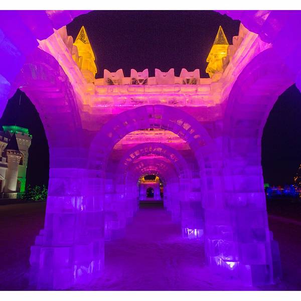 欢乐冰雪世界一到了晚上,才真正的散发出她独特的魅力,这个与白天截然不同的视觉盛宴会让你感觉仿佛来到了另一个异世界,长廊的柱子是用冰砖砌成的,冰柱里面是空心的,装有彩灯,发出五颜六色...【呼兰河口的夜】