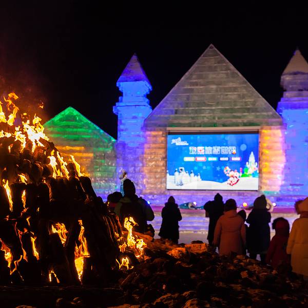 居然仍旧会惊喜不断,每个大人在雪世界里也找回了童心未泯,冰屋里吃火锅,雪地里燃起篝火,唱着歌跳...其实这几天真的很冷,也恰恰赶上寒潮,据说50多年的同期最低温,可苦了,也险些冷哭了,这些南方来寻雪的客人,不管你是老男孩还是小男孩儿,还是南方姑娘,经历了这几天都会难忘的。