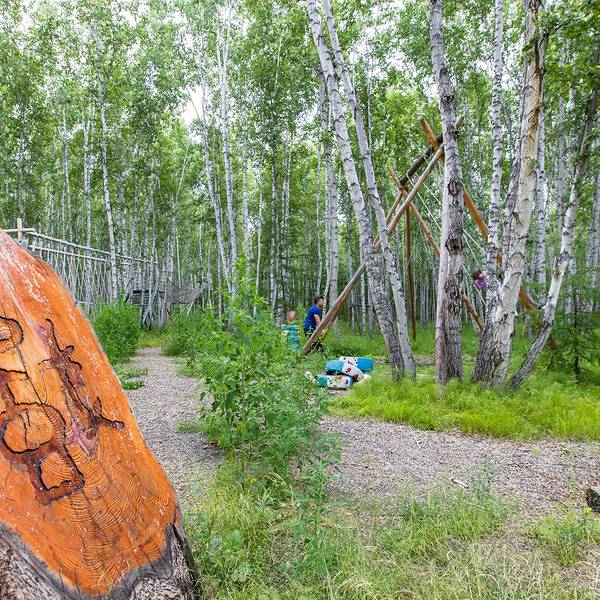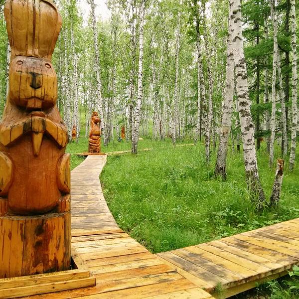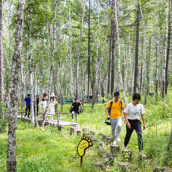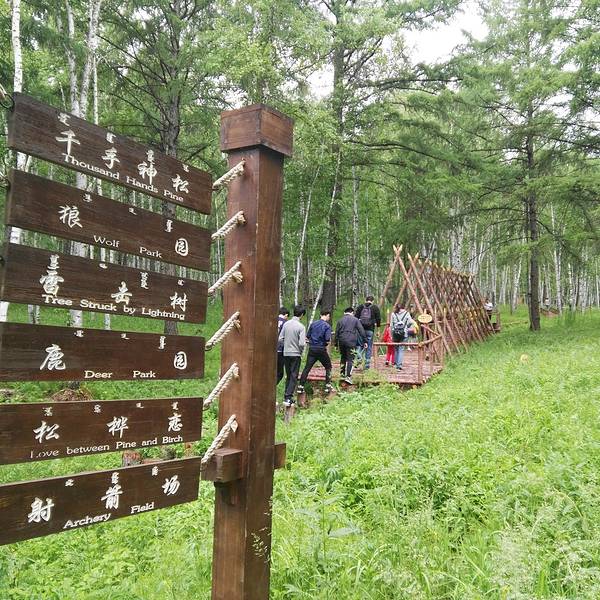 景区以展现原始的林业生产和古老神秘的狩猎生活为主题,可欣赏哈乌尔河的千曲柔美,体验玩转父辈儿时的游戏。分在展示园有森林生态文化展厅,可观赏131种动植物标本和古老的林业人生产生活用品,有11种森林原始捕猎工具展示,犹如置身于原始森林深处的原始部落;有狼、鹿、松鼠、鸽子等动物,可以与它们喂食、拍照留念;在嬉戏园可以体验射箭、“快马子”锯木头、林间秋千、独木桥等娱乐项目;观赏园有阔叶林过渡到针叶林的自然景观;有生态完好,蜿蜒曲折,堪称“森林曲水之最”的哈乌尔河景观。有漫山的碧翠和缤纷的野花。