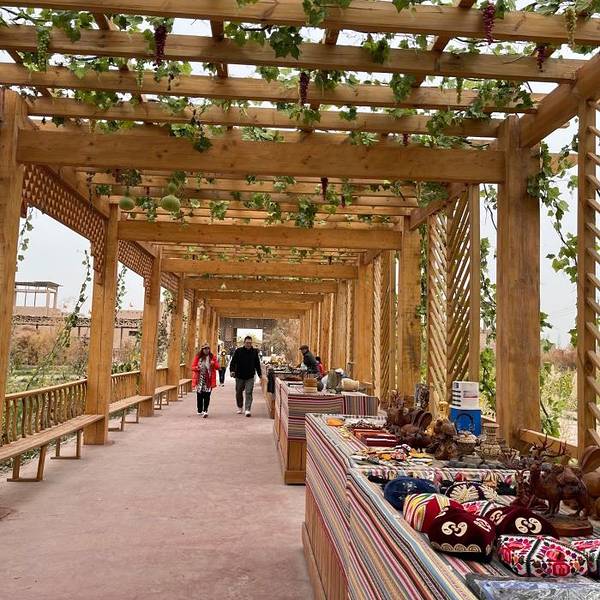 景区连门票都是通关文牒,很特别,进入红海景区,你会看到古城门,这里有‘西域盛世’实景演出,再现了丝绸之路上的繁华景象。红海景区位于喀什地区巴楚县,红海景区所在区域是连接喀什地区、克州、和田地区和西藏昂立地区的交通枢纽。