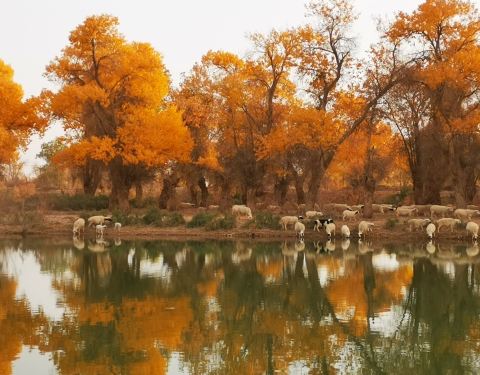 ...地处戈壁滩上,所以沧桑感比较强,西域风情独特,这里的胡杨很美,尤其是在秋天时,金灿灿的,很好看