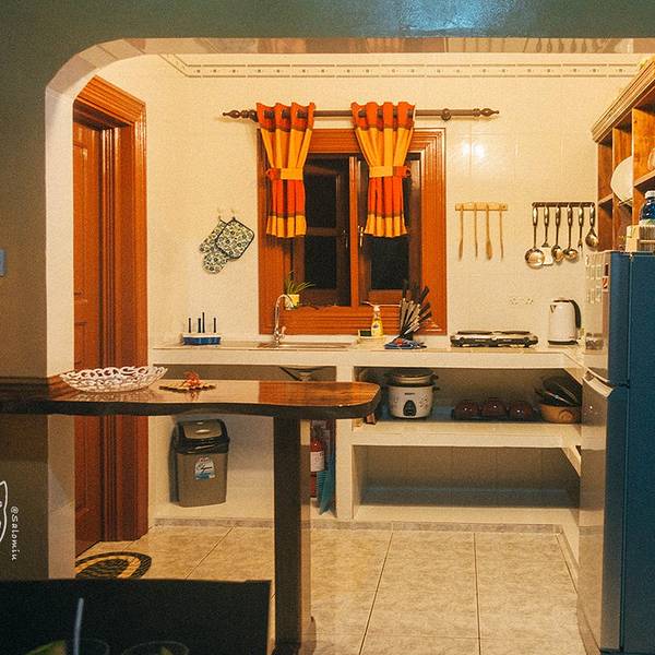 整栋房子分上下两层,一楼是餐厅、厨房和次卫,二楼是卧室、小阳台和浴室,整栋楼都是木头搭建的,弥漫着淡淡的木头香,接下来的几天,这里就是一个小家了。房东太太一家人住在旁边的一栋房子里,两个孩子和爸爸一起热情地过来打了招呼,祝晚安。拉迪格岛