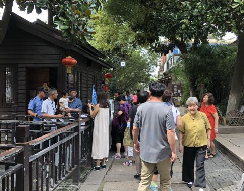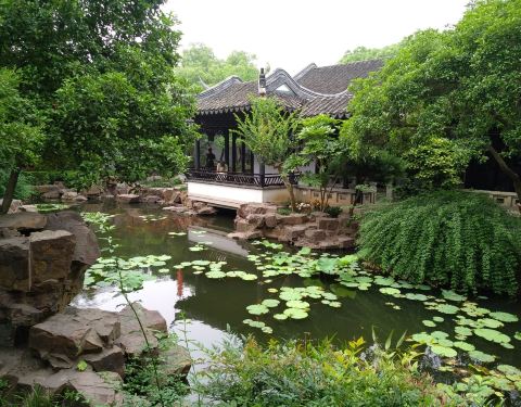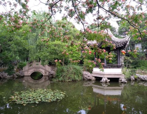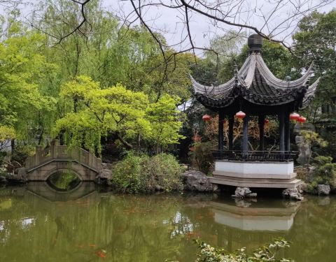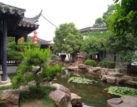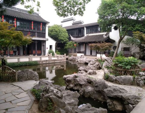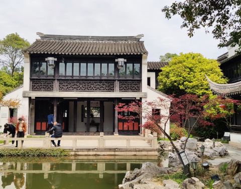 严家花园是典型的苏州园林风格,里面很美,旅游团也特别多!