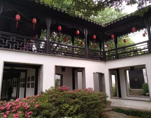 江南园林特色,建筑结构精妙,厅室交错,辗转回廊,屋中有天井,一进屋后又有花园小径、小桥流水鱼塘...