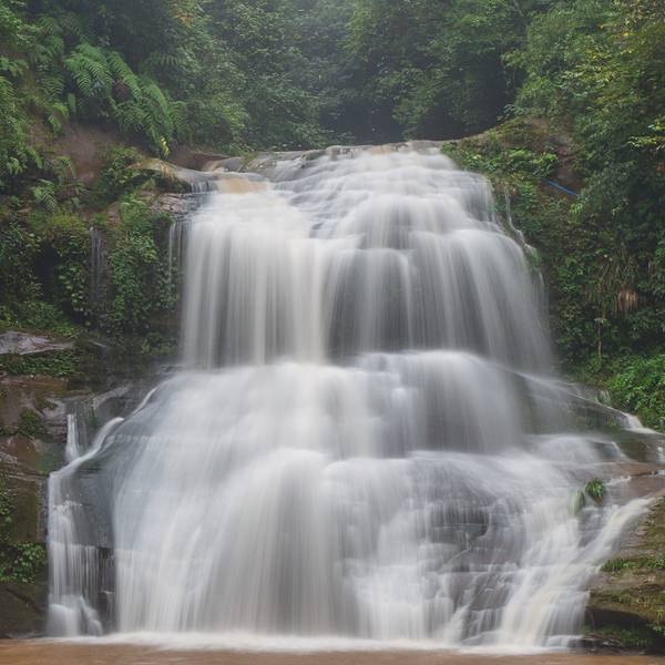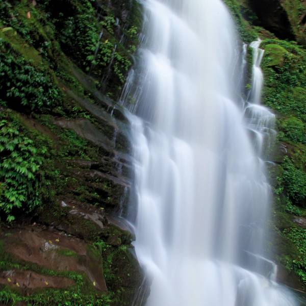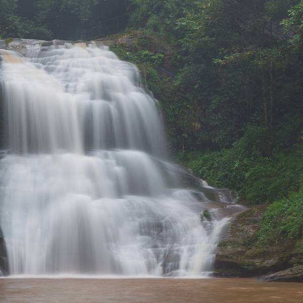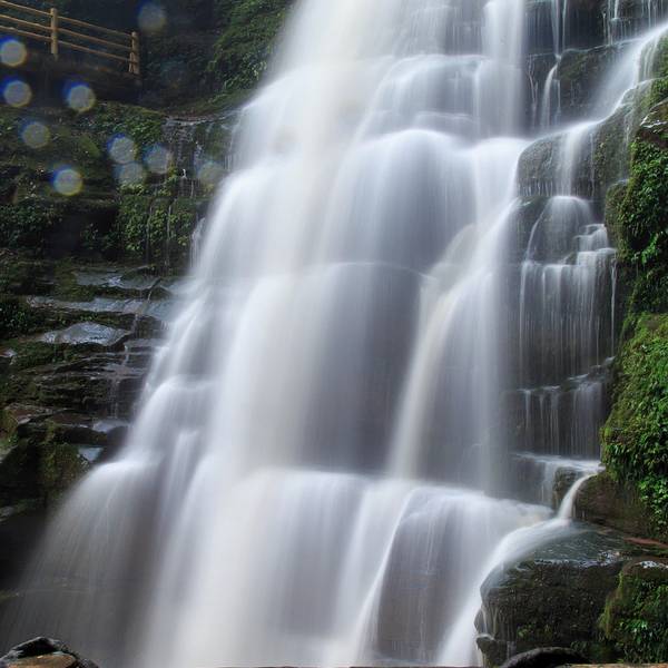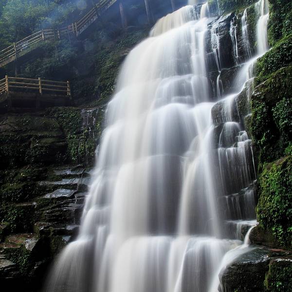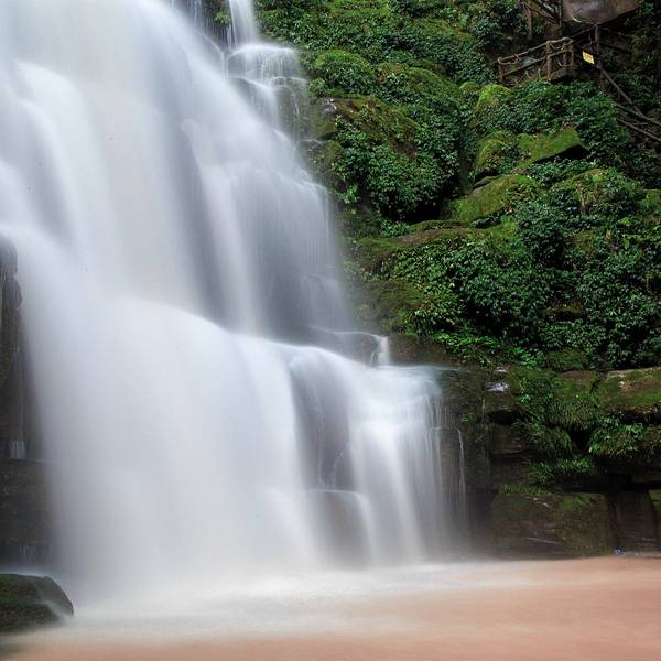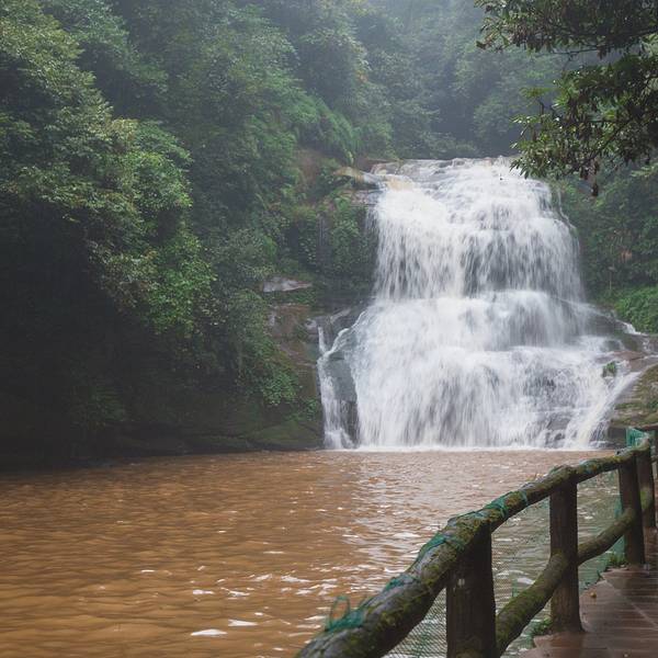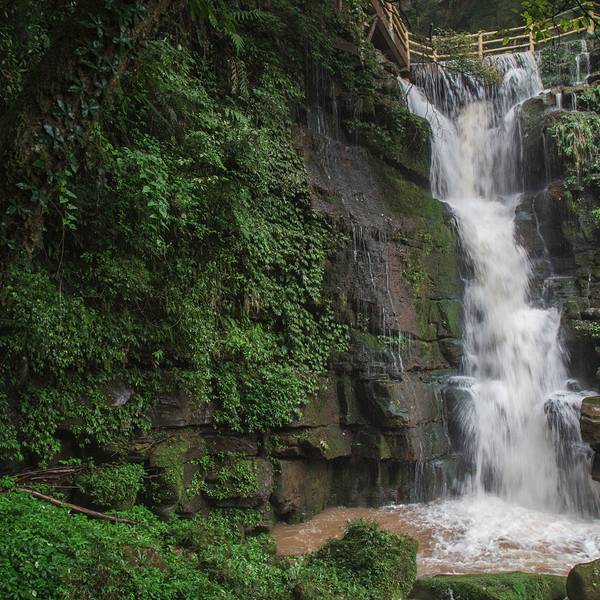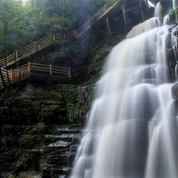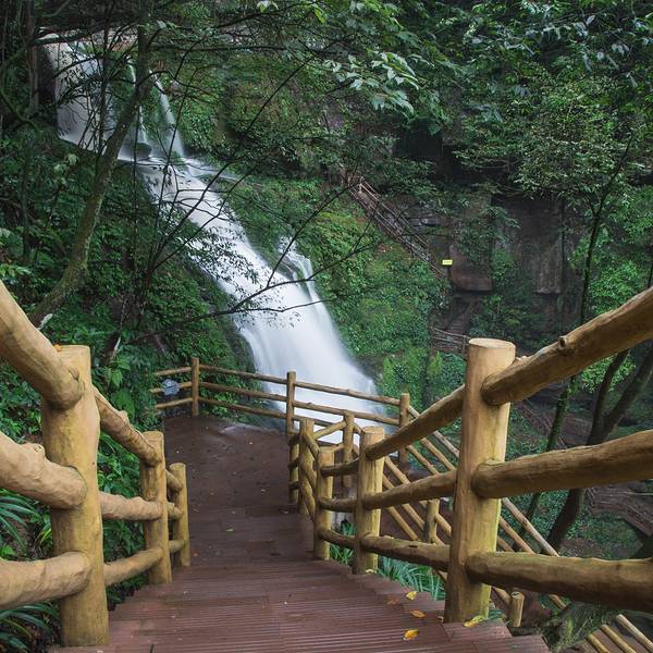 女娲池银瀑高悬,位于景区白龙潭瀑布下,为瀑布多年冲刷而形成的开阔潭池,碧水平铺。