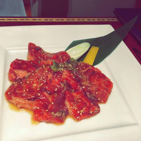 ❤位置❤ 因为直接在DP收藏了,就直接跟着定位走了..走到了发现不对... 在路上遇到了一对日本夫妇,带我们去了..还问我们是哪里来的,我说上海,对方说他们暑假就要搬去上海,有缘人。 so,所以按照定位走,要绕...❤位置❤ 因为直接在DP收藏了,就直接跟着定位走了..走到了发现不对... 在路上遇到了一对日本夫妇,带我们去了..还问我们是哪里来的,我说上海,对方说他们暑假就要搬去上海,有缘人。 so,所以按照定位走,要绕大厦一圈,绕到商场,然后到8楼。 ❤服务❤ 到店11点,已经要等位了,不过还好就等了20几分钟。双人位依旧和其他店一样是并排靠窗,走路有点吃力。烤肉是要自己烤的,服务员是基本看不到的..需要按铃...当然换盘子也是不会主动的..中午和晚上弹钢琴的妹纸是不一样的.. ❤菜品❤ 尽管没有什么服务,口感依旧是满分。 力推的是烧烤格纹牛肩脊肉、和牛拼盘 慎选的是葱花牛舌..葱花是真的很实在,不过我不喜欢.. 午市会有一些套餐,价格很便宜,口感也是意外的好吃,可以尝试。 套餐里会送软饮或者朝日啤酒,软饮是粉色的可尔必思。 餐后买单以后会有小甜品