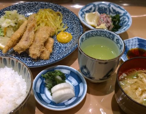 这家位于新宿商业区的低调米其林餐厅,其实是一星哦,不过除了晚上会提供价格较高的料理套餐外,中午的平价午市套餐似乎人气更高。几款鱼食材为主的定食看着都很诱人的样子,选择了炸鱼套餐,又单点了一份沙丁鱼...