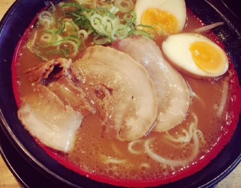 也是一个连锁店,我只能说我这次算是开眼了,我还真没见过在日本有量这么大的拉面…我还点了个大份的,上面的肉片特别厚,盖了整整一层,别人家的面条一筷子都能挑起来,他家的面条,你要是一筷子只能把肉都撒出来~我在日本这么多天终于算是吃撑了一回竟然还剩下了,MOMO 那份要的是正常的,只是觉得吃到后来实在不想吃那大肉片了,太腻了…