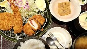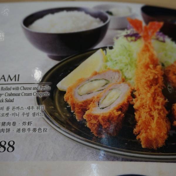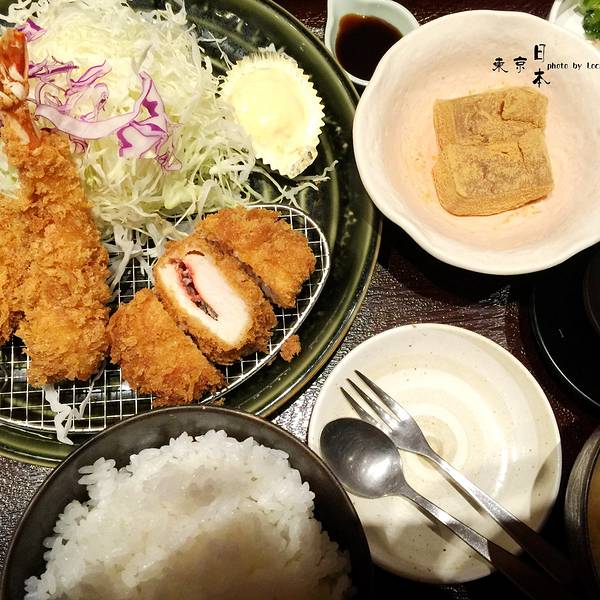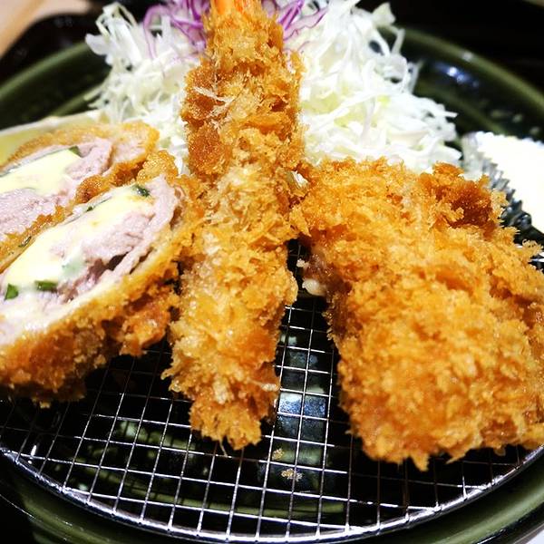 是日本非常有名的猪排店。或许因为原料不同,和上海伊势丹里的看起来完全不同,肥美多了。点了御膳用的猪排。上来这米饭不知道怎么形容口感,就是略有不同,很好吃。猪排表皮松脆,肉质滑嫩,咬一口就有满满的幸...是日本非常有名的猪排店。或许因为原料不同,和上海伊势丹里的看起来完全不同,肥美多了。点了御膳用的猪排。上来这米饭不知道怎么形容口感,就是略有不同,很好吃。猪排表皮松脆,肉质滑嫩,咬一口就有满满的幸福感。洋白菜丝,切得均匀细致,原生态的甜脆。此外,白饭、卷心菜和味增汤是可以任意添加的,喜欢吃的可以自由享受哦。浇上最特别的配角,猪排酱配猪排,虾酱配炸虾,芝麻沙拉酱配卷心菜,此外还有辣酱、日式酱油,这一顿太满足了。 - 上海久光有的,但没有品尝过。要拔草必须来日本。除了排骨,一切全部可续